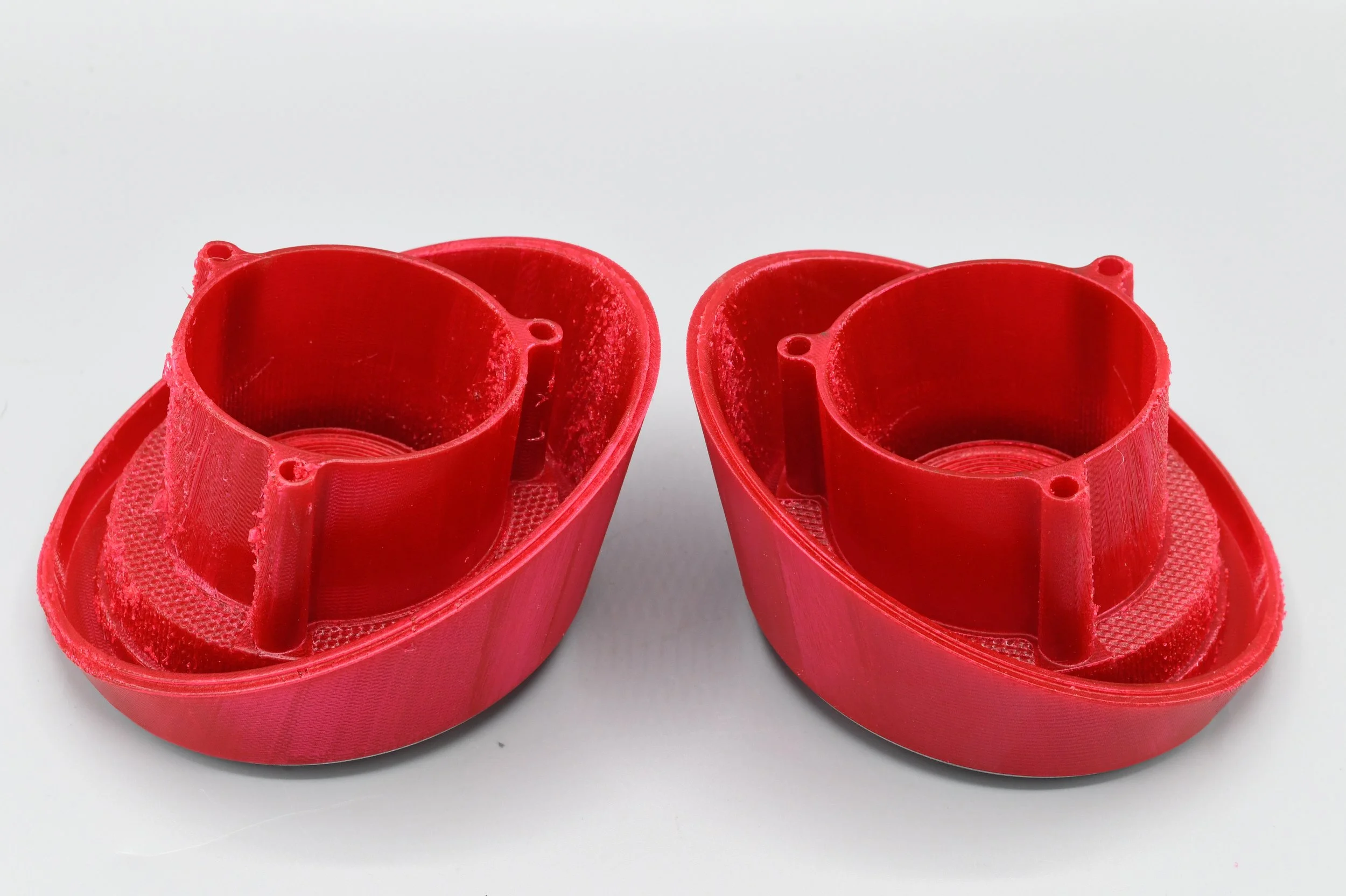 These are printed from fully reverse engineered nurbs surfaces drawn over high resolution 3D scans of the original lenses, and printed on a hobby grade printer in a home shop.